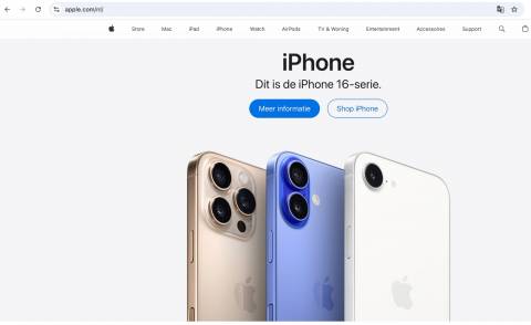 Apple is een meester in eenvoud. Hun website laat meteen zien waar het merk voor staat: innovatie, design en gebruiksvriendelijkheid. Grote productbeelden, veel witruimte en korte, krachtige teksten maken alles overzichtelijk en premium.