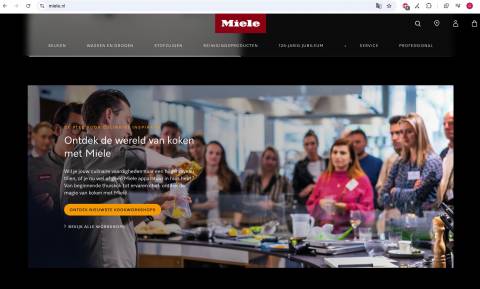 Miele’s website is overzichtelijk, modern en duidelijk gericht op kwaliteit. De stijl is ingetogen en professioneel — precies wat je verwacht van een merk dat staat voor betrouwbaarheid en duurzaamheid.