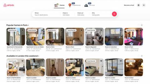 Airbnb focust op community en gastvrijheid. De website vertelt verhalen van hosts en reizigers, met fotografie die persoonlijk en echt aanvoelt.